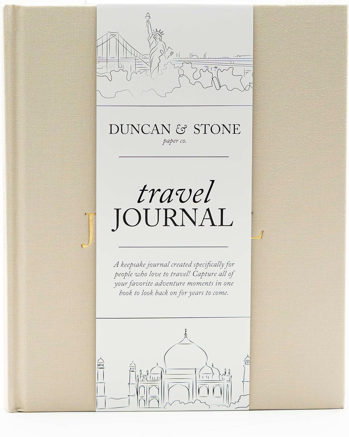The Travel Journal is a beautifully designed keepsake for recording memories, adventures, and bucket-list dreamsfrom up to 15 trips. With a durable linen hardcover, gold-embossed title, and lay-flat pages, it’s perfect for capturing stories, photos, and keepsakes from every journey. Thoughtful guided prompts and a flap pocket make it easy to document highlights, lessons, and special moments. A charming and meaningful Christmas gift for travel lovers, newlyweds, or anyone eager to preserve their adventures for years to come.