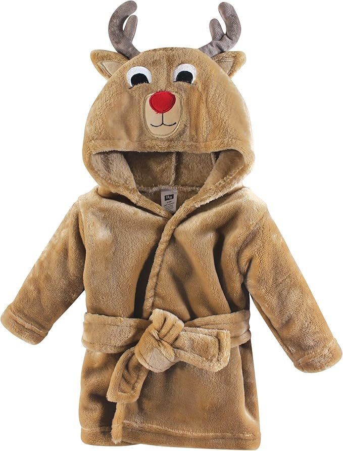 Wrap your little one in cozy holiday cheer with this adorable reindeer hooded bath robe. Made from 100% plush coral fleece, it’s soft and gentle on baby’s skin, providing warmth and comfort after bath time. Designed for everyday use, this high-quality, affordable robe combines cute style with snuggly softness—a perfect holiday gift for babies and toddlers.